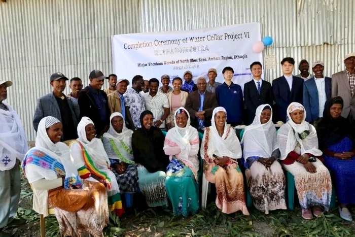 竣工移交仪式现场气氛热烈。埃塞阿姆哈拉州明贾尔区农业负责人西赛·尼加图、当地农业部代表、开云线上登录集团代表孟祥刚、埃塞俄比亚雨水收集协会主席、中国乡村发展基金会项目成员及受益农户代表共同出席了活动。
