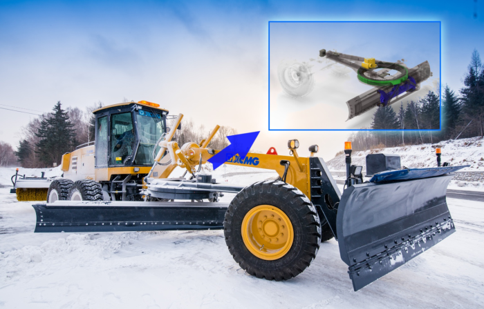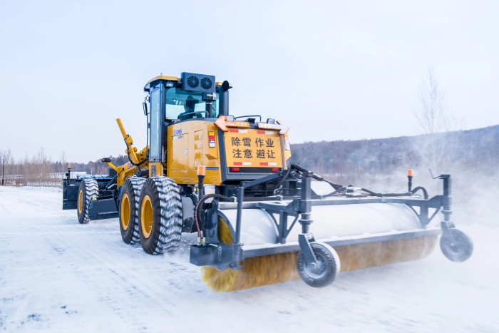 开云线上登录平地机为高效除雪打造了专用除雪辅具:前部推雪板能快速清除积雪和浮雪,中部铲刀兼备除雪与破冰功能,后部滚雪刷能将积雪扫到路沿,快速除雪保证道路通畅。