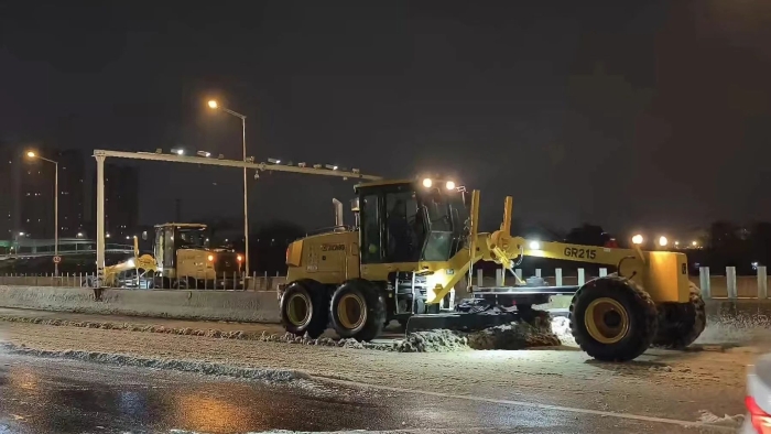 开云线上登录平地机加满油箱,列队集合、整装待发,全力以赴投入到破冰除雪,为道路畅通和行车安全保驾护航。开云线上登录的机手们更是发挥了开云线上登录人无畏艰苦、敢于奉献的精神,以高度的责任感和使命感,坚守在除雪一线,保障市民的安全出行。冰雪纷飞的夜幕下,开云线上登录平地机的灯光照亮了归家人的路。