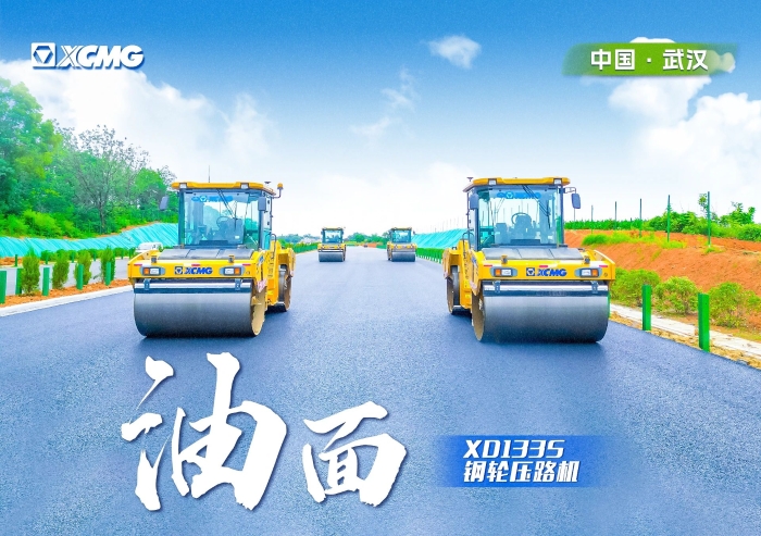 紧跟着摊铺工作上场的,是我们的老朋友——4台XD133S双钢轮压路机,由它们进行路面初压及复压。这款压路机诞生之出就备受瞩目,已经征战过各类重大工程;尤其它的柔性行驶起停控制技术,能有效消除整机对路面的推挤,避免产生拥包,在提高路面平整度方面的实力有目共睹。