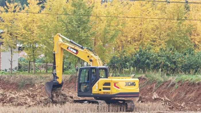 在“天府粮仓”四川眉山仁寿县方家镇,数台XE135GA挖掘机正有条不紊地在田间地头来回作业,将大小不一、分散不均的地块聚拢推平,一块块规范的高标准农田初具雏形。现场操作机手表示,“(挖掘机)主要是搞人工替代,目前我们正在对农田进行小田改大田、坡地改平地、开挖沟渠等工作,XE135GA动作协调,速度比较快,爬坡非常有力。”
