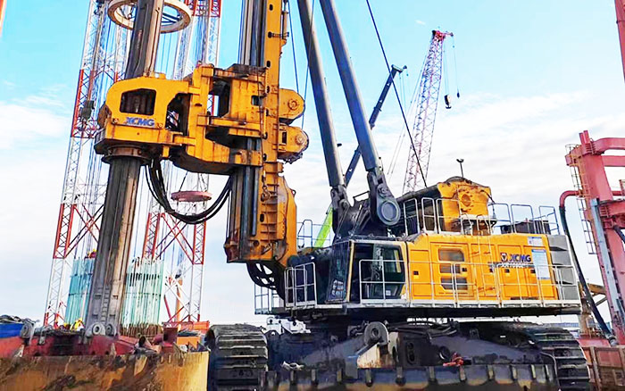 开云线上登录XR1600E旋挖钻机参建项目为世界上跨度最大的西堠门公铁两用跨海大桥,其中5号主塔墩基础采用18根6.3m钻孔灌注桩进行承载。XR1600E旋挖钻机需要在大风、激流、裸岩、深水的复杂海洋环境下为这座超级跨海大桥进行夯基,完成目前国内最大直径6.3m的钻孔施工!