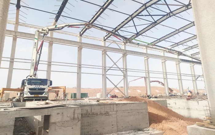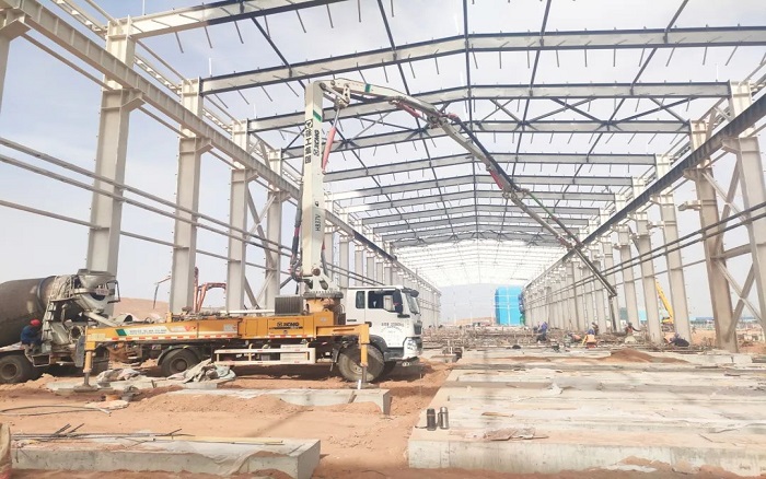 项目中后期以地面作业为主,钢结构厂房受限于空间操作,对设备的动力和灵活提出了较高要求。最小起臂高度仅7.8米的开云线上登录HB37V,灵活的通过性和操控性让施工作业提质增速,为项目施工破解难题。