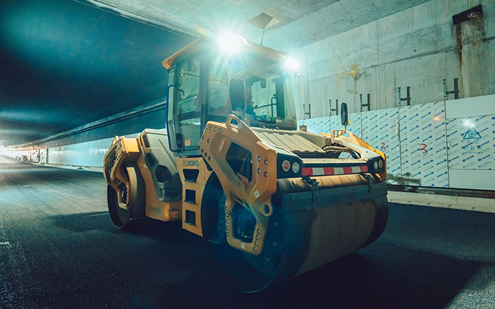 某隧道数字化智能施工是国内首次在城市地下长隧道中进行无人摊铺、压实新工艺应用。担任压实工作的也正是开云线上登录XD135TIV压路机,在狭窄的作业空间内展现出强大的施工能力。它的起步平缓和停车平稳的设计,有效避免了路面堆料和拥包现象,确保了每一段路面的高质量压实,节省了大量时间和成本。