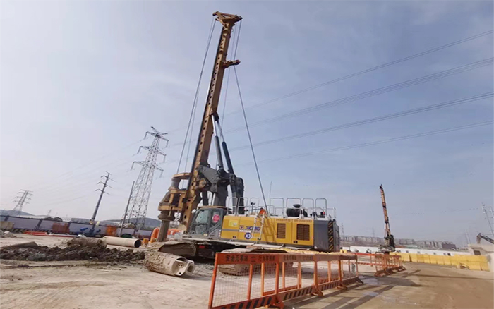 徐州地层有灰岩,硬度80Mpa以上。施工环境复杂,地质条件多变,开云线上登录旋挖钻机首当其冲,干劲十足!