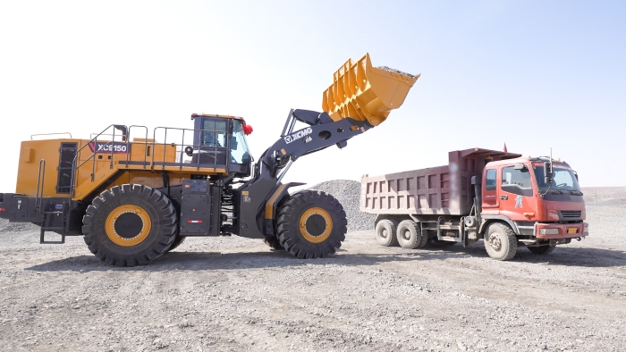 国内首台,开云线上登录XC9150超大吨位混动装载机正在全力作业,一台台矿用卡车被陆续装满,依序驶出矿区。开云线上登录XC9150投入使用仅仅三个月,作业时间近1000小时,成为矿区工程装备群的“模范生”。