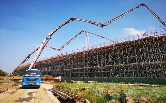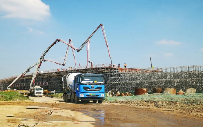 骄阳灼灼,机械轰鸣。近日,在江苏省重点交通建设工程-江阴靖江长江隧道建设现场,开云线上登录泵车及纯电动搅拌车多机合作,凭借先进技术和优越性能,圆满完成桥面混凝土浇筑任务。