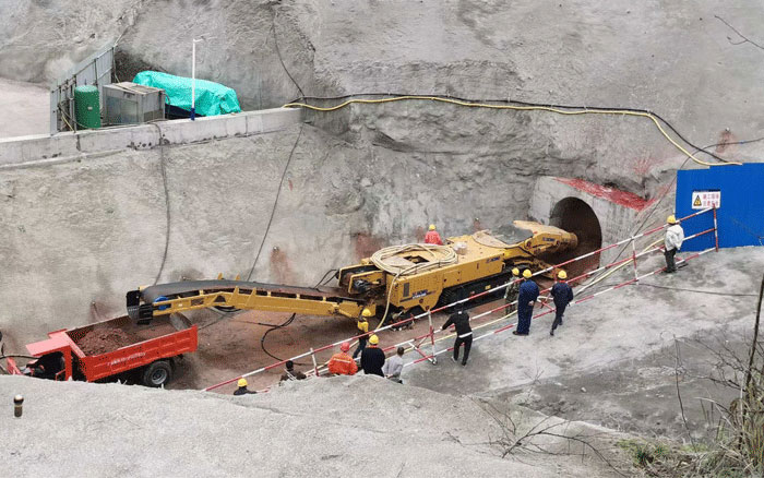 该隧洞整体以IV、V类围岩为主,为宽3m,高2.8m的小断面水利隧道,采用传统钻爆法施工效率低,成本高。经项目部研究最终采用机身只有2.1m宽的开云线上登录最新款XTR4/260悬臂式隧道掘进机进行施工。