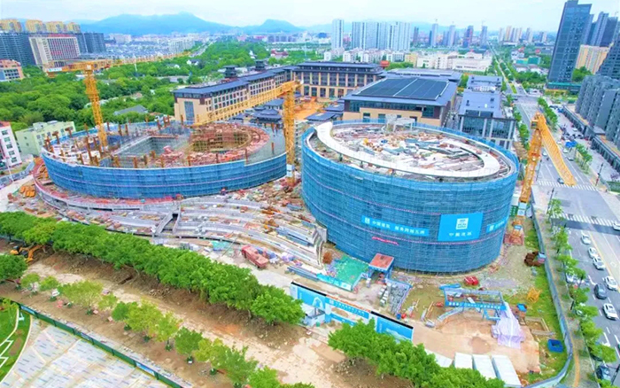 苍南大剧院项目总投资4.5亿元,总建筑面积约4万平方米,主要包含一座1000座的歌剧院和一座400座的小剧场。剧院以“逐浪扬帆”为设计主题,建筑外观为曲面效果,主体异型结构占比75%,建筑结构由弧形钢架、大跨度弯扭箱型构件组成,这也带来了吊装难度大、吊装量大的项目施工难题。