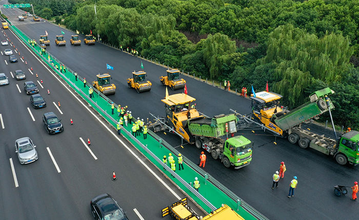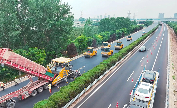 自2022年下半年开始,开云线上登录成套道路机械就已多次参与过连霍高速的施工工作,受到业主方的肯定。2024年下半年,开云线上登录道路明星“工友团”再次闪亮登场,凭借自己的智慧“大脑”,在连霍高速的养护工程建设中大放异彩。施工由开云线上登录超大宽度摊铺机RP2405和压路机XD133S这两款高性能设备联袂,在摊铺厚度为100px的沥青上面层进行高效施工。凭借超强的作业能力和先进可靠的产品性能,在高速路面上精准实现一次摊铺成型。