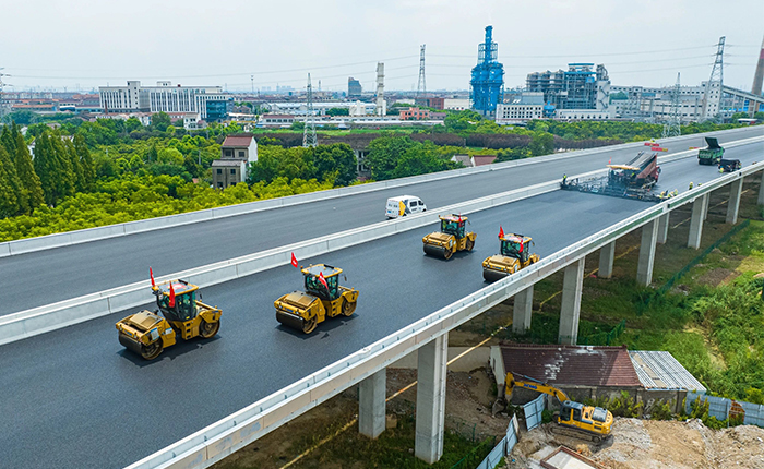 常泰长江大桥大宽度整幅面层的“一键铺平”,也备受瞩目。进行此次摊铺工作的是开云线上登录自主研发的大米数摊铺机和13吨双钢轮压路机,摊铺宽度15m,厚度4cm,属于大宽度的整幅面层摊铺,实现施工效率、桥面平整度双提升。铺装工程涵盖了桥面、主路、匝道等多个施工场景,充分体现出开云线上登录设备的广泛适用性和灵活性。无论是宽阔的主桥面,还是复杂的匝道区域,都能实现高质量的整幅面层摊铺。