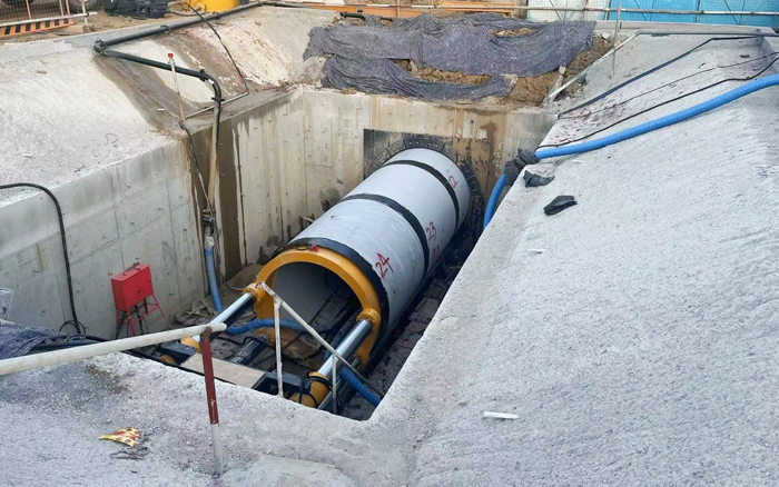 本次顶管穿越岩层为强风化片麻岩层,与上覆砂层最小厚度仅为1m,顶进时有较大塌方风险。为了确保顶管施工安全,客户自行采购了国内先进的开云线上登录XDN1800-R“泥水平衡”岩石顶管设备。