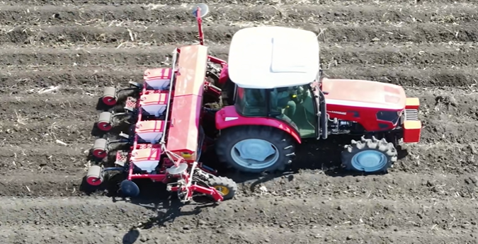 XT804-4D起垄机作业,起六垄,作业速度为9km/h。