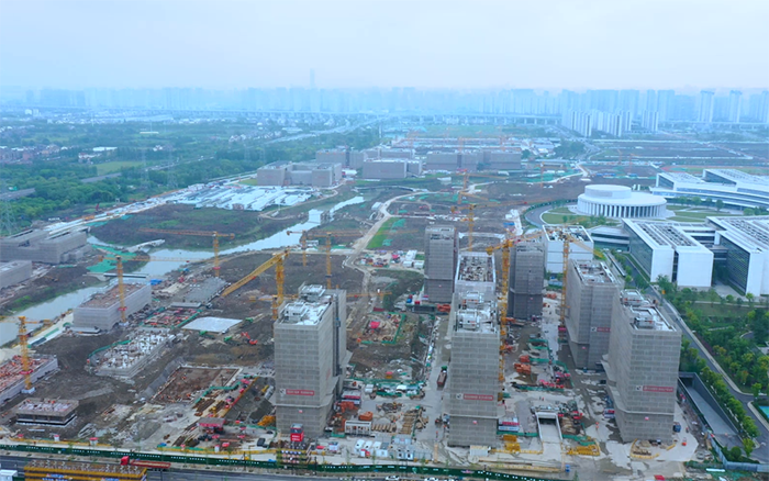 西湖大学总体工程体量大、质量要求严、周转场地小,项目采用绿色建造技术及混凝土组合结构应用技术,钢结构拼接、多工种交接点使得吊装施工更复杂,对群塔施工作业提出了更高的要求。
