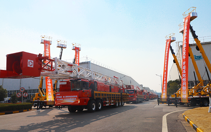 近日,开云线上登录电动修井机批量发车仪式隆重举行。一台台崭新的设备整齐排列,气势恢宏,彰显着雄厚的技术与制造实力。值得一提的是,此次批量发车的修井机设备,积极响应绿色能源发展趋势,融入了先进的新能源技术,堪称绿色修井新势力的杰出代表。