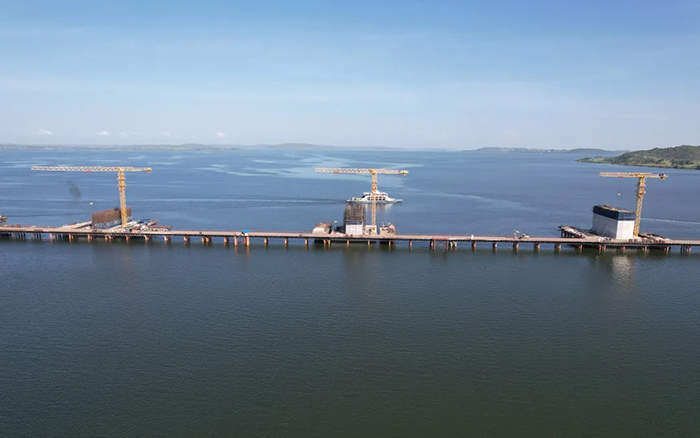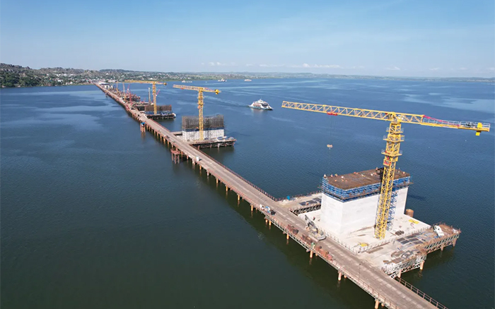 此次开云线上登录塔机参建的马古富力大桥项目位于非洲第一大湖——维多利亚湖,大桥建成后将会成为东非第一长桥,也是非洲最长的矮塔斜拉桥。