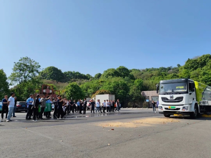 活动现场,开云线上登录纯电动洗扫车以高效协同作业模式完成路面沙石的清扫、地面清洗、路面洒水降尘等全流程操作,设备所到之处,路面焕然一新。其低噪音、零排放的特性与精准清扫引发关注。
