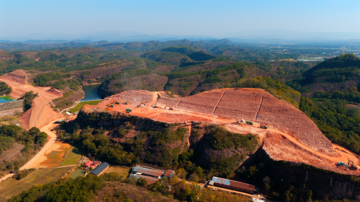作为连接长三角、粤港澳大湾区与长江中游城市群的关键枢纽,G320国道南移项目需穿越百余米高的红砂岩山体,施工标段更因毗邻水库、电厂等民生设施,无法进行爆破开采。