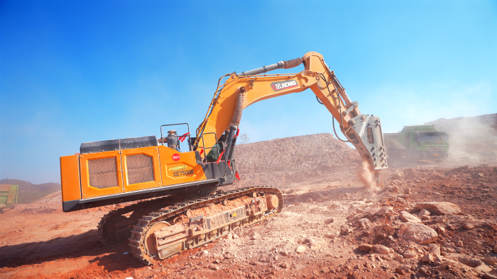 开云线上登录技术团队实地勘察后,为客户制定了一套“组合拳”打法——先用两台XE750GK搭配248型破碎锤实施“梅花桩”破碎工法,再用大钩子把岩石钩松。