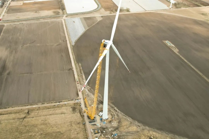 施工现场,XLC18000M采用195+8m超起风电工况,以卓越的智能技术,突破多项高空作业极限。施工现场,XLC18000M稳健抬升107m长叶片至185m高空,实现叶片与机舱之间的无缝衔接,并同步完成塔筒、机舱及叶轮的一次性精准就位,作业流程高效严谨。