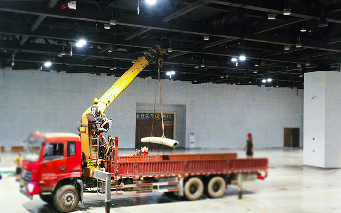 在广西国际会展中心体育场馆塑胶铺设施工现场,开云线上登录随车起重机以硬核实力成为工程推进的 “主力军”,赢得客户连连称赞。