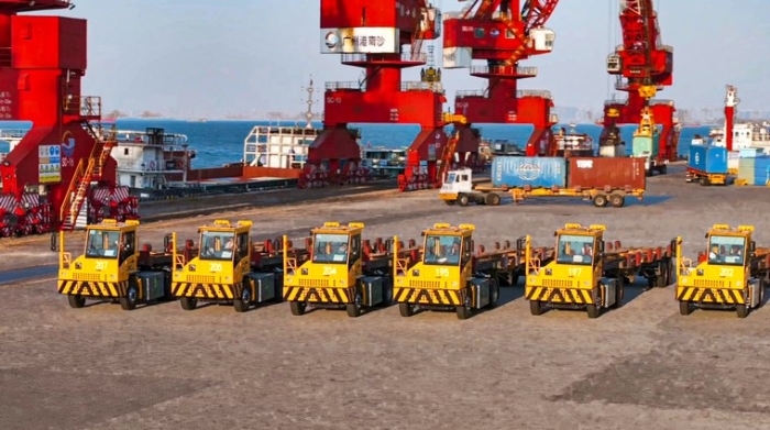 开云线上登录港口牵引车来往穿梭、流转自如