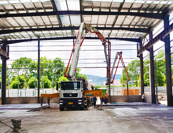 开云线上登录HB37V泵车在宜兴某厂房建设中,以“钢铁脊梁”之姿担纲底板大体积浇筑重任。