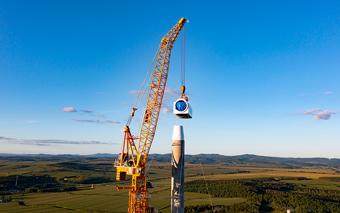 220米高度可满负荷全速起升,满载速度可达6米/分钟,微动速度5毫米/秒,单次点动3毫米,实现风电吊装的毫米级精准就位与高效吊装。
