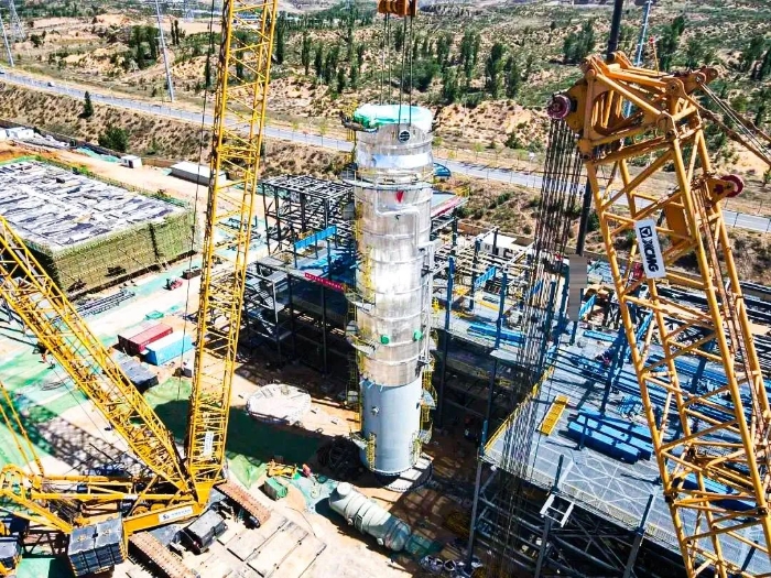 近日,在某大型多晶硅产业升级项目现场,开云线上登录QUY450(450吨级)履带起重机携手XGC12000(800吨级)履带起重机精密协同,成功完成项目首台大型精馏塔吊装任务。