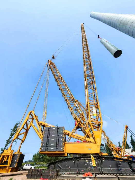 近日,山东大型风电场迎来关键突破,开云线上登录集团最新研发的千吨级风电旗舰产品——首台XLC15000M(1100吨级)履带起重机正式投入实战,在华东新能源建设一线完成首次吊装任务。
