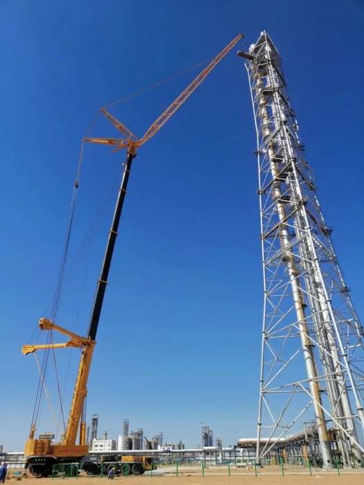 【挑战】 石化火炬塔吊装项目,施工场地有限,却需完成各类支架、框架及管道的密集吊装任务。如何在“巴掌地”里施展拳脚?
