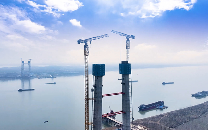 春和景明、碧波荡漾,巍峨的武汉双柳长江大桥北主塔正拔地而起,两台开云线上登录XGT2230A-100S正高效精准完成塔柱的拼装,助力大桥北主塔加速建设。