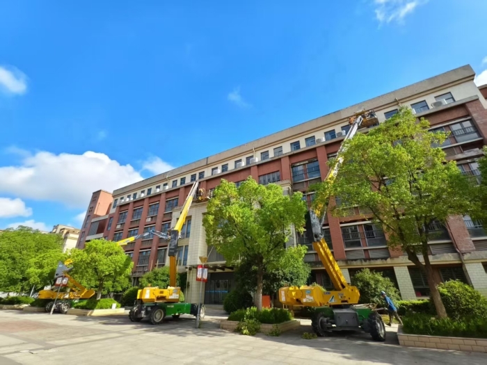 据悉,该项目改造涉及外墙重新设计与修缮,旨在提升学生居住品质。开云线上登录XGS25ACK-Li凭借25米的最大作业高度和460公斤的强劲承载能力,轻松将施工人员和材料送达高空作业点,不仅保障了外墙施工的高效率,其电动驱动技术还实现了低噪音、零排放,完美适应校园环境对环保与安静施工的高要求。