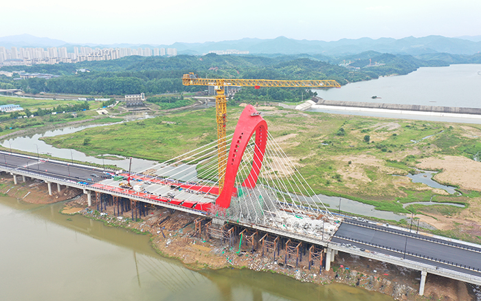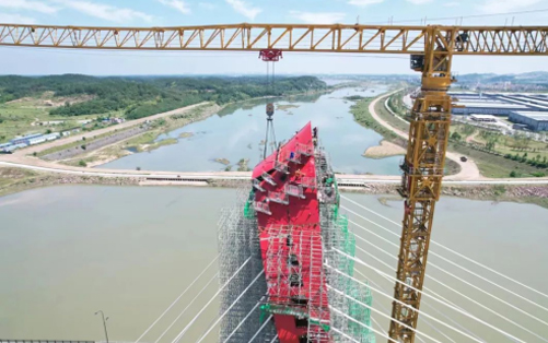 在大别山腹地、金寨县史河河畔,“红色摇篮”傲视远方,开云线上登录XGT2230-100S塔机挥舞着巨臂,随着重达40吨的主桥钢塔柱最后一个节段起吊安装到位,金寨史河大桥主塔顺利合龙。