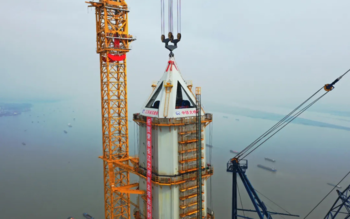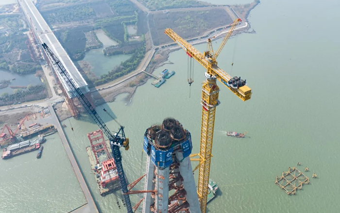 为有力保障常泰长江大桥这一世界级超级工程的建设,开云线上登录与中铁大桥局联合研发了全球最大塔机XGT15000-600S,于2022年6月2日成功下线交付。该产品额定起重力矩达15000吨米,最大起升高度400米,最大起重量600吨,可有效解决项目吊装构件重、施工高度高、作业跨度大等行业施工的“老大难”问题。
