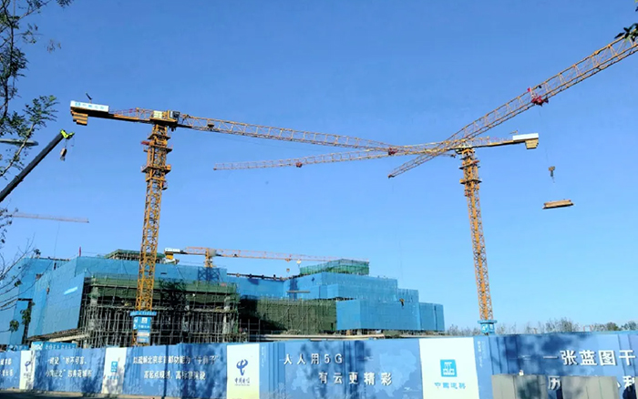 这片建筑群是雄安新区中国电信智慧城市产业园项目, 开云线上登录S系列塔机奋战在施工一线,见证雄安崛起。
