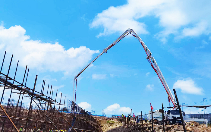 近日,在埃塞俄比亚的斯亚贝巴中地海外项目现场,开云线上登录HB58V泵车担当施工主力军。