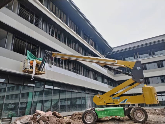 在四川省广安市广安理工学院新建校区的外墙施工中,开云线上登录XGS28ACK-Li电动直臂式高空作业平台发挥了重要作用。