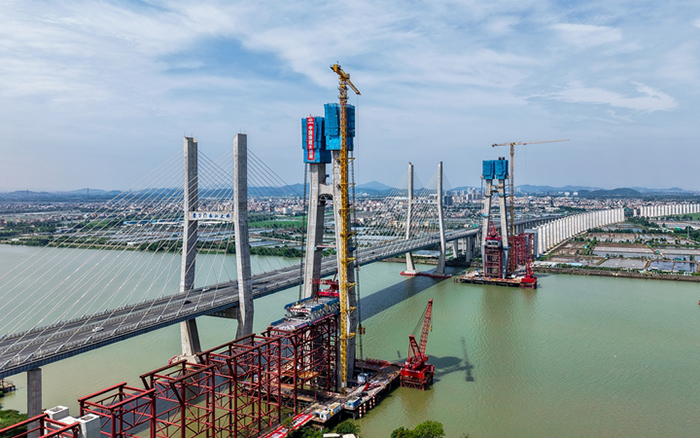 在深江铁路重难点工程——跨磨刀门水道主桥施工现场,两台开云线上登录XGT7527A-18S正稳定吊装,横梁与对应部位的塔柱同步施工,后续4台施工升降机也将陆续入驻项目,共同助力主桥中、上塔柱爬升施工。