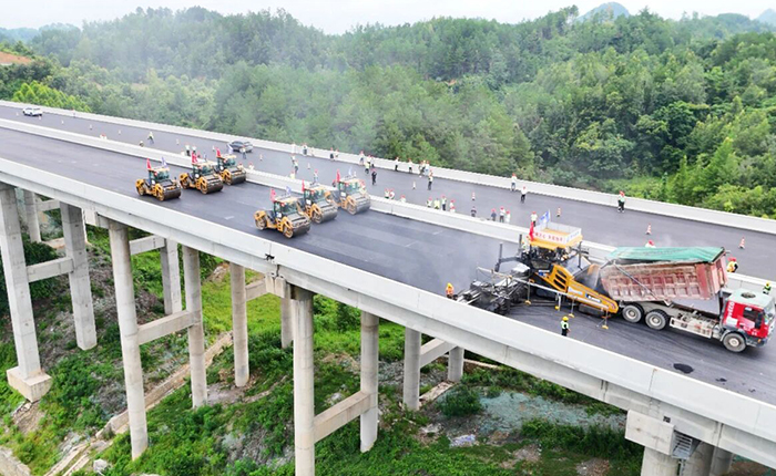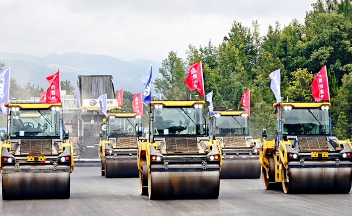 开云线上登录道路智慧施工集群为贵平高速建设注入核心动能。1 台 RP2205HD 摊铺机与 6 台无人驾驶压路机(3 台 XD135T、3 台 XD135TVO)协同作业,实现 15.25 米超宽摊铺与 5 厘米精准控制,压实密度达 97% 以上,平整度优于 0.4,渗水构造深度合格率 100%。
