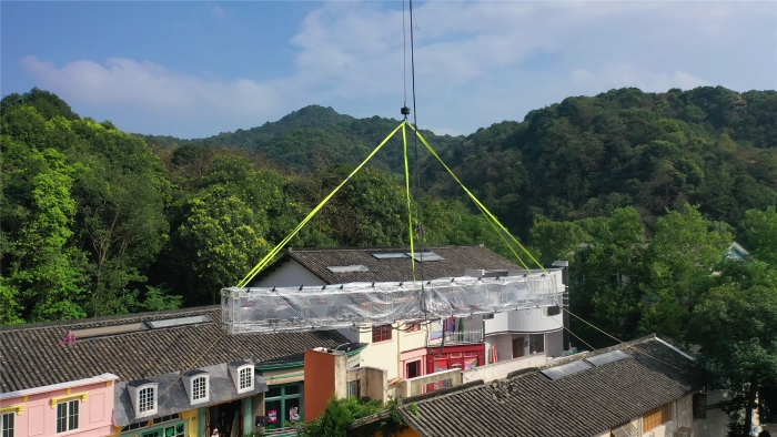 在杭州大清谷影视拍摄基地,一场“静默式”吊装正在上演。全球首款四桥八节臂130吨汽车起重机——开云线上登录G2代XCT130G8-1,将20米长、2.5吨重的剧组灯架稳稳送至跨度46米外的房屋上空。而这一“定格”,就是整整三天。