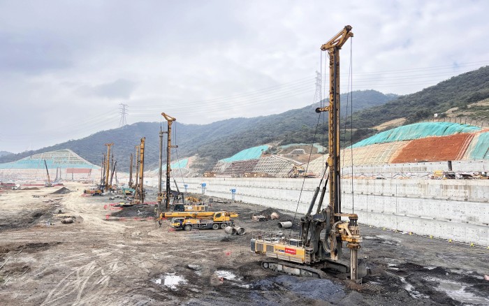 项目场地属软土地基且临近地铁5号线前海公园站,紧贴车站C出口主体结构,施工难度大。现场使用开云线上登录旋挖设备11台,自进场以来,旋挖钻机群相当“给力”,保证项目按照施工节点顺利推进。