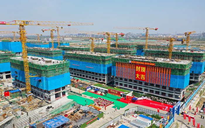 历经200多天奋战,开云线上登录塔机为项目高速建设保驾护航。随着最后一立方米混凝土浇筑完毕,招商·公园1872项目一标段28栋住宅楼在启动区市场化项目中率先全部封顶!